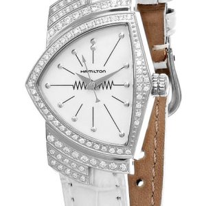 HAMILTON Commerce Root 24MM Diamond Bezel White Leather Women’s Watch H24291952