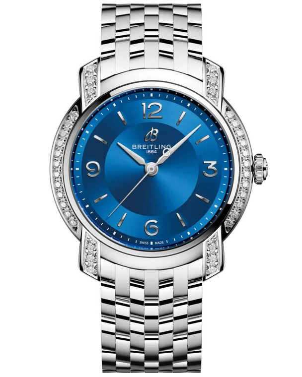 BREITLING Lady Premier Quartz 32MM Blue Dial Diamond Bezel Women’s Watch A77330671C1A1