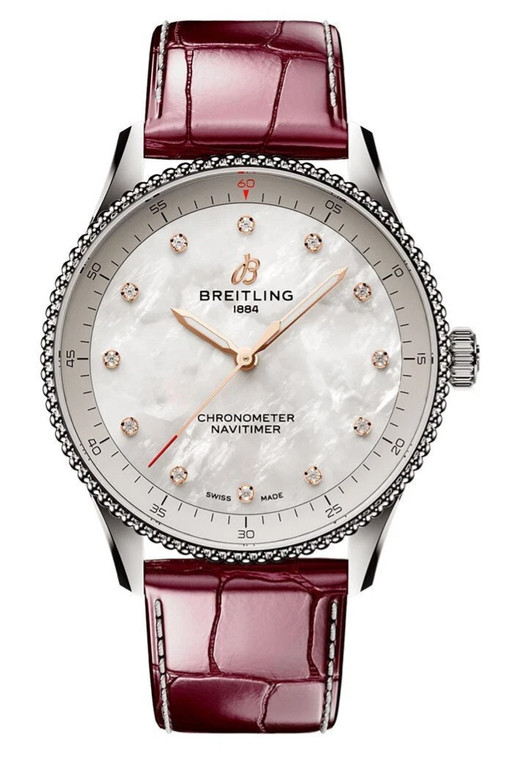 BREITLING Navitimer Quartz 32MM MOP Diamond Dial Leather Women’s Watch A77320E61A2P2