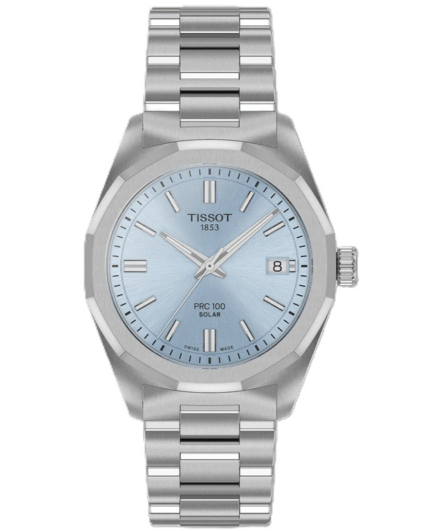 TISSOT PRC 100 Solar Quartz 34MM Ice Blue Dial Women’s Watch T151.822.11.351.00 / T1518221135100